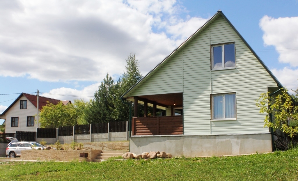 Современный, готовый к проживанию дачный дом в двух уровнях 2014 г.п. Представляет собой утеплённый сруб, обшитый сайдингом. Установлены стеклопакеты. Крыша металлочерепица, утеплена и звукоизолирована. Вода сезонная, сан.узел, душевая кабина и бойлер в доме.